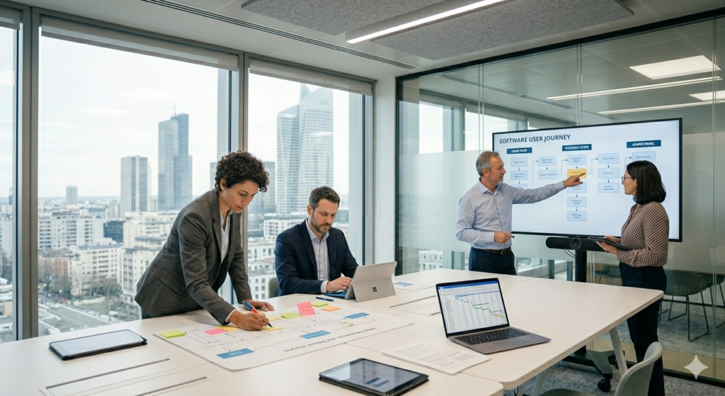 Nous concevons des parcours utilisateurs fluides et des solutions technologiques innovantes. Nos experts transforment vos idées en interfaces performantes pour offrir une expérience digitale d’excellence à vos clients
